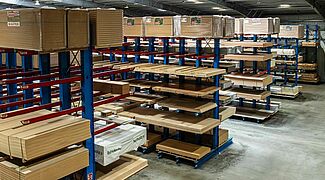 Pertanto, l'uso dello spazio nel capannone di FRIES ha effettivamente raggiunto un nuovo livello: Finora, nell'area del capannone si lavorava solo sul pavimento, l'altezza del locale rimaneva inutilizzata. Il soppalco ha reso possibile ampliare lo spazio operativo senza dover costruire un nuovo capannone. Le capacità di stoccaggio ottenute sulla superficie della struttura vengono sfruttate al massimo attraverso una gestione ottimizzata sotto forma di stoccaggio a blocchi. La vecchia scaffalatura cantilever rimane ancora in uso, destinata ora al deposito di merci che richiedono un accesso individuale e che, per loro natura, non si prestano allo stoccaggio in blocchi.