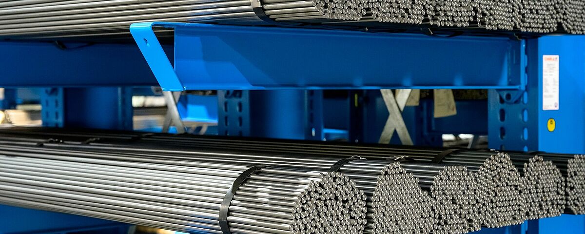 Per questo, l’utilizzo di elevatori ha costituito la base nella progettazione del nuovo magazzino per merci lunghe: i prodotti in acciaio inossidabile e in acciaio lucido dovevano essere stoccati nei cantilever in formati lunghi e in fasci della lunghezza di 3-6 metri. In questo modo, con il carrello elevatore è possibile accedere in modo mirato e rapido al singolo articolo. Dovevano essere impiegati carrelli elevatori standard da 5 tonnellate, che possono agevolmente movimentare un carico massimo di 4 tonnellate. Ogni compartimento dello scaffale doveva poter essere riempito con un carico del carrello elevatore, per mantenere il processo più snello possibile. L’altezza di alzata da raggiungere in sicurezza è stata stabilita da Wiedmann a 5,5 metri.